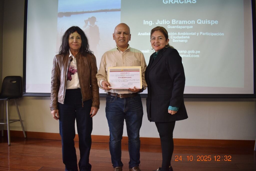 El evento principal contó con la participación del Ing. Julio Bramón Quispe, analista de Educación Ambiental y Participación Ciudadana del Servicio Nacional de Áreas Naturales Protegidas por el Estado (SERNANP). Durante su ponencia, el Ing. Bramón abordó temas clave como la conservación del medio ambiente y el programa de guardaparques voluntarios.
