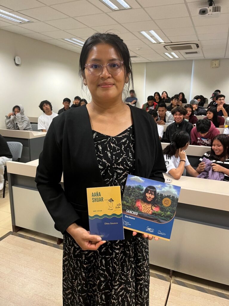 La Facultad de Educación (FAEDU) de la Universidad Peruana Cayetano Heredia (UPCH) recibió a la reconocida poeta y artista visual Dina Ananco, autora awajún y wampis, ganadora del Premio Nacional de Literatura 2022. La escritora ofreció una charla a los estudiantes de la carrera de Educación Intercultural Bilingüe, enfocada en los desafíos de la escritura indígena, su proceso creativo y la crucial importancia de preservar las lenguas vivas del país.