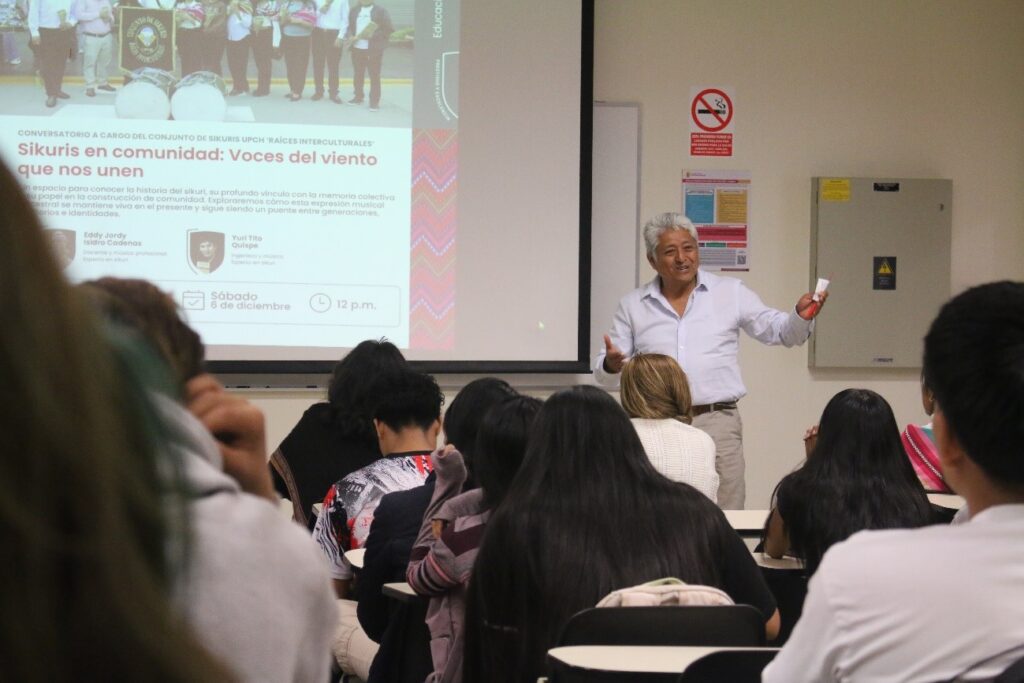 - Yuri Tito Quispe, docente de la Facultad de Ciencias de la UPCH y músico, quien compartió sus conocimientos detallados sobre los instrumentos que conforman las tropas de sikuris, su organización característica y las tradiciones que sustentan esta práctica comunitaria.